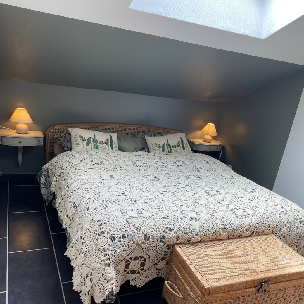 Le gîte peut accueillir jusqu’à 5 personnes et offre tout le confort d’un vrai chez-soi. Le spacieux séjour, baigné de lumière, invite aux moments de partage: jeux de société, repas conviviaux ou soirées cocooning au retour d’une balade. Que vous veniez en famille ou entre amis, chacun y trouvera sa place pour se détendre, rire et se retrouver, le temps d’un week-end ou de vacances prolongées.